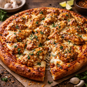Buffalo creamy garlic sauce, cheese, red onions & buffalo chicken