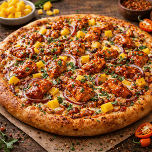 Mango habanero sauce, cheese, red onions, jalapenos, pineapple & chicken